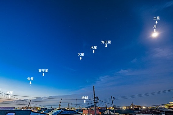 「惑星直列」が話題になっていますが、ほぼ同じ面を回っている惑星たちを地球から眺めているため、見かけ上並んで見えるんです。